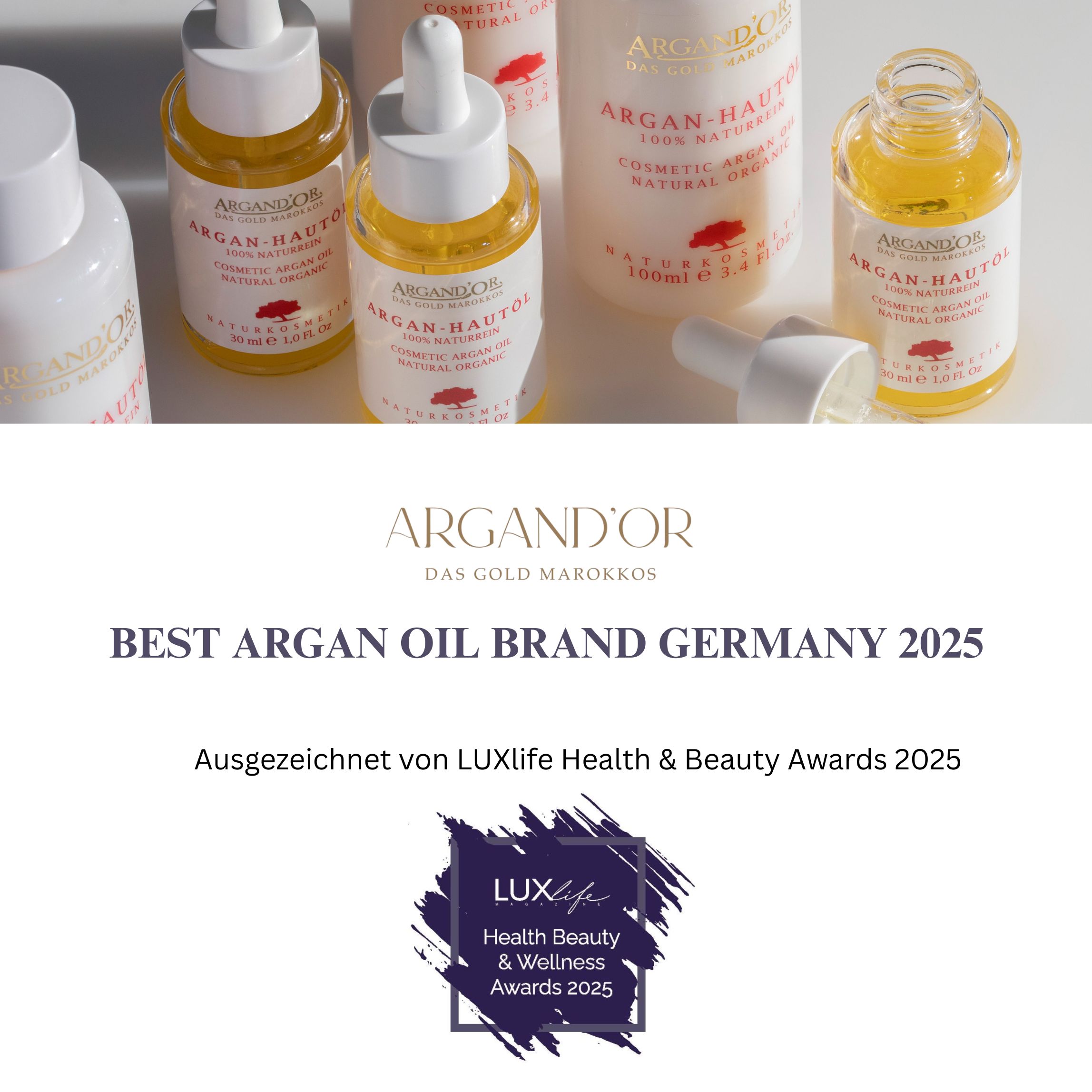 - Arganöl: naturrein, Bio zertifiziert und unverfälscht – reich an Antioxidantien und essentiellen Fettsäuren.